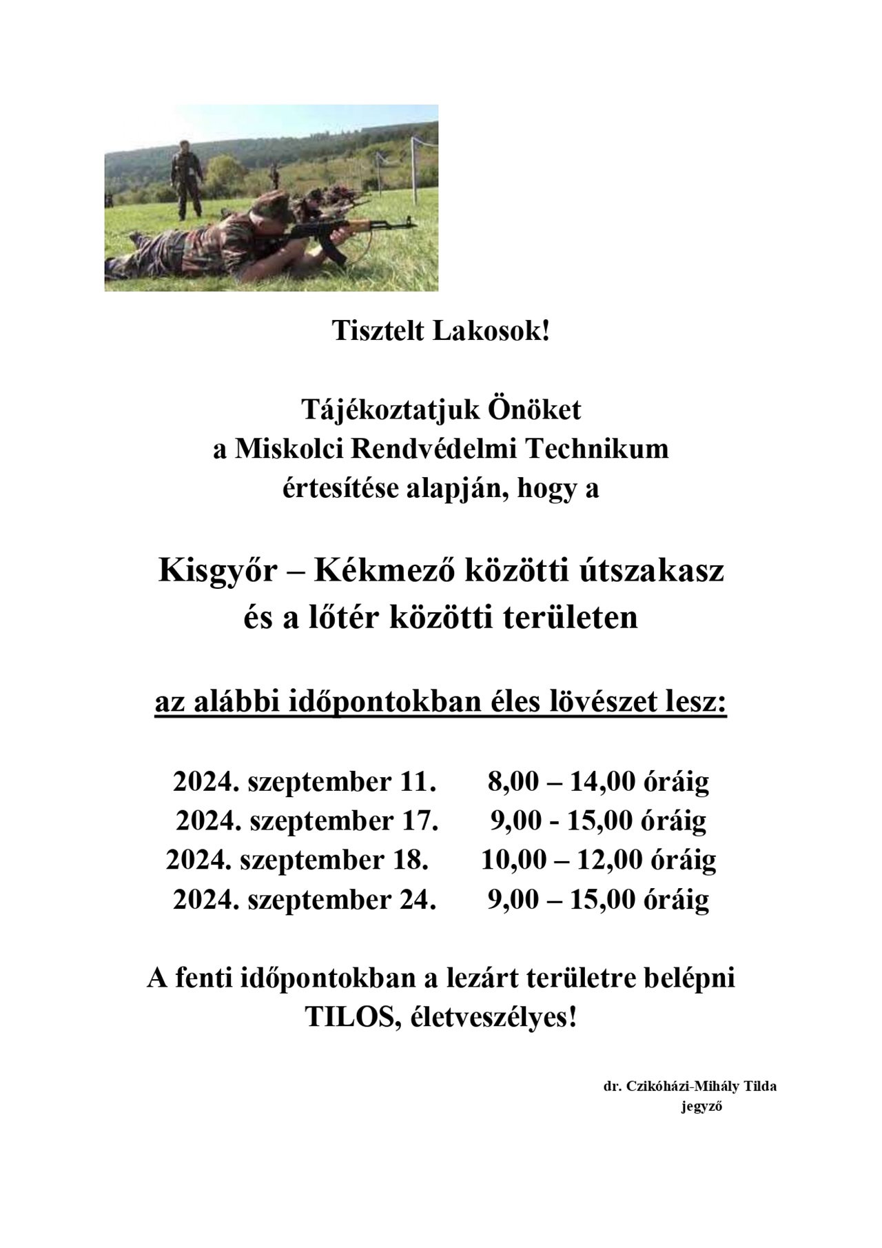 Útlezárás éles lővészet miatt