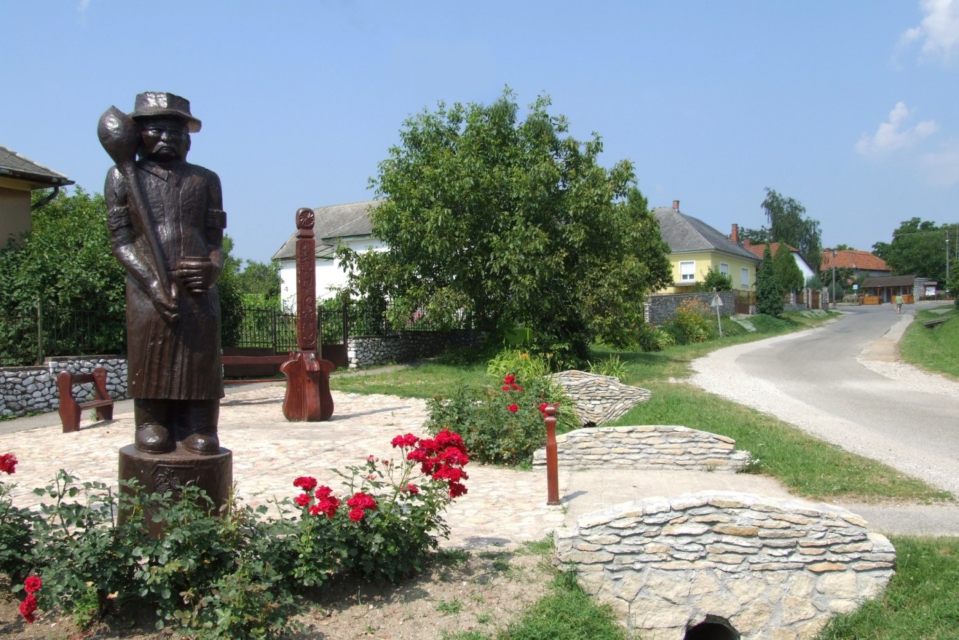 Az ivókutunk, mint a székfoglalóm címében is található, olyan alkotás, amely a hétköznapokon és ünnepnapokon is fontos szerepet tölt be az életünkben. Ezen a helyszínen egy kék közkút volt, helyébe került ez az alkotás, amely hétköznapjainkon ivóvizet ad a szomjazóknak, ünnepnapjainkon, jeles napjainkkor a hangulat emelésére bor folyik belőle. Az ivókutat az égtájaknak megfelelően tájoltuk, a rozetták elkészítése is ennek megfelelően történt. A két oldalára pedig egy- egy bibliai idézetet véstünk.