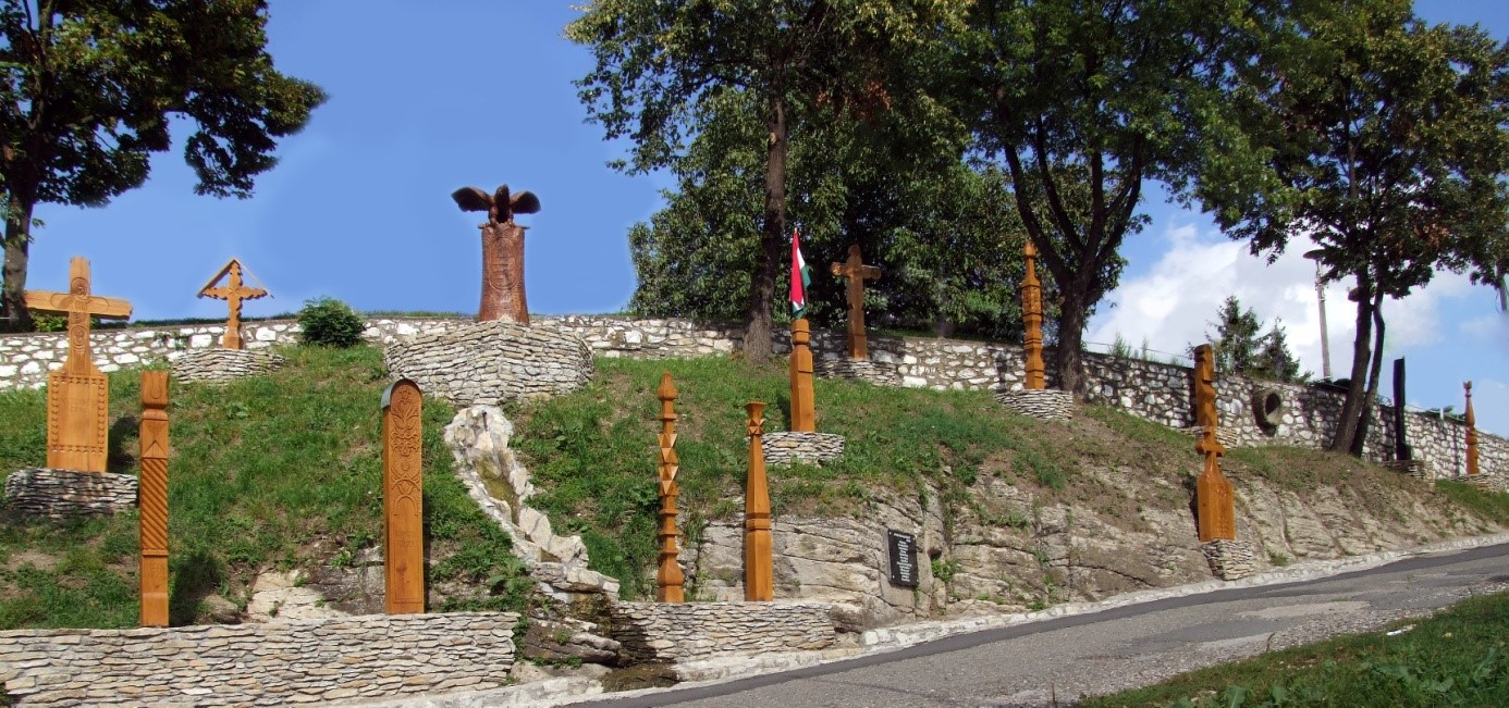 Az aradi vértanúk helyszínét Kossuth szavai alapján választottam ki. „Arad pedig a magyar Golgota.” Ebből a sziklás, gazos domboldalból tényleg egy méltó kegyeleti helyet varázsoltunk. Nem egyszerűen csak kifaragtunk 13 db fejfát, hanem a 13 fejfa, sírkereszt, emlékoszlop utal a mártírok születési helyére és vallásukra is. Még elhelyezésében is olyan, mint egy hatalmas térkép. Érdekességként kiragadnék egy- két alkotást, amelyek mára már eltűntek. Pl.: lutheránus sírkereszt vagy a gömöri fejfa és a szerb fejfa.