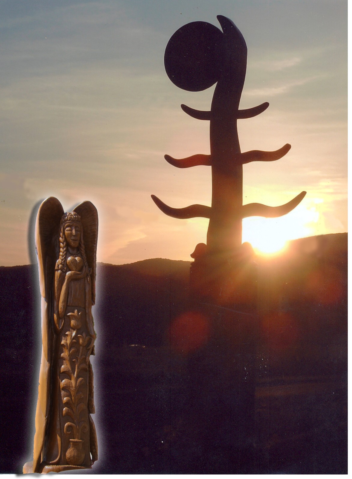 A tér közepén egy angyal található nyitott szárnyakkal, kezével szívet emel az ég felé, erre helyezik az elhunyt koporsóját. Ez a gondolat református énekünkről jutott eszembe. „Szívemet hozzád emelem, és benned bízom Uram”. A kegyeleti hely tetején lévő kereszt mind a református mind a katolikus felekezet jelképére utal. (kehely, kereszt.)
